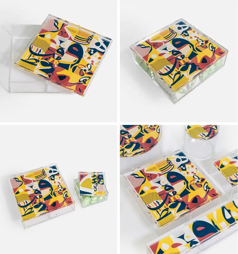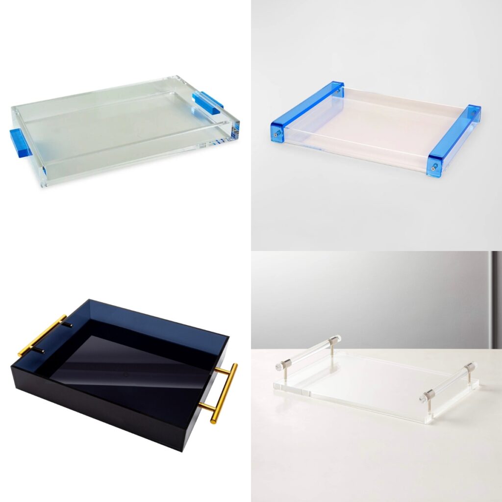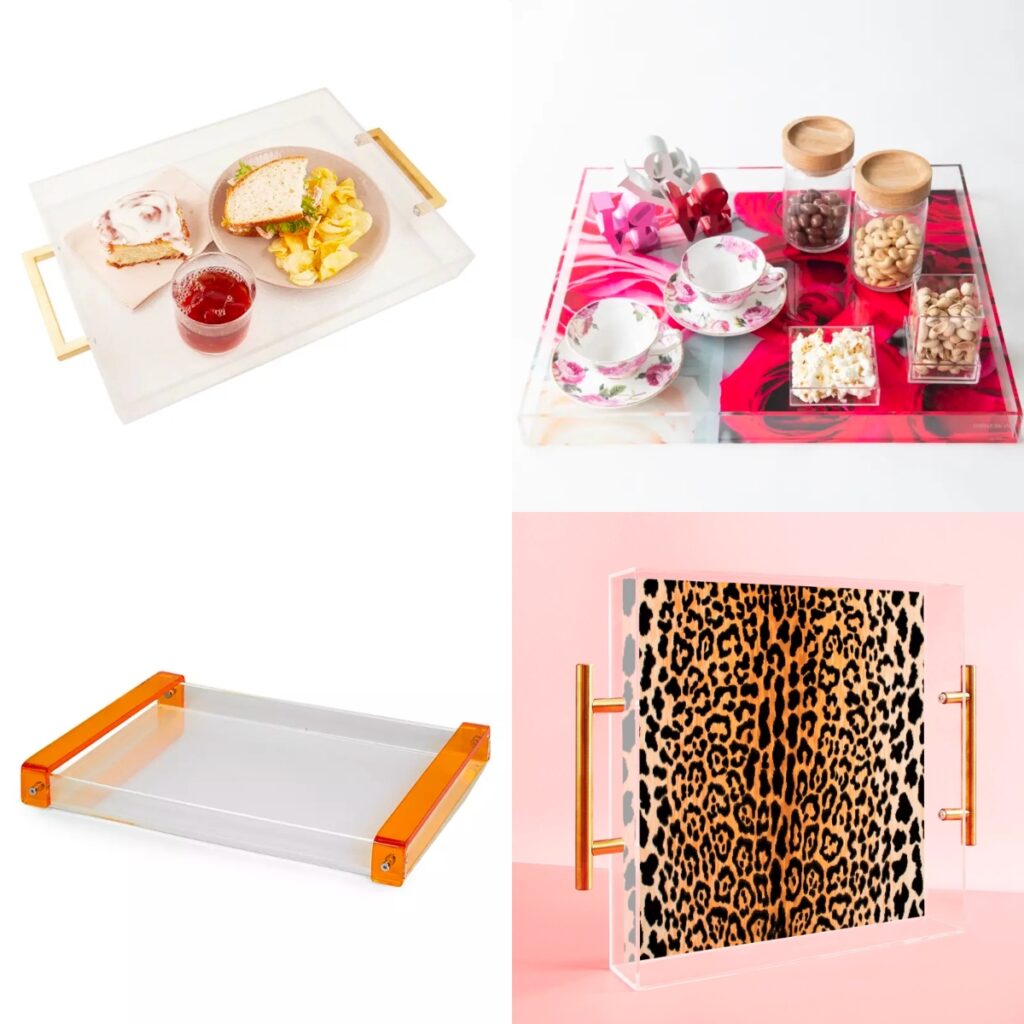 Each tray is handmade by artisan framers, and completely customizable: with a variety of colors to choose from, creating an effortless way to bring a pop of color and style into any space. Made with crystal-clear, laser-cut acrylic, these chic, stylish serving and decorative trays breathe life into any room.