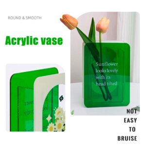 Acrylic book vase for flowers is known for its transparency, designed for book aesthetics is a beautiful and practical choice for displaying flowers in a variety of settings, from home decor to special events. “Not including flowers”.