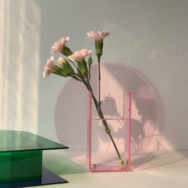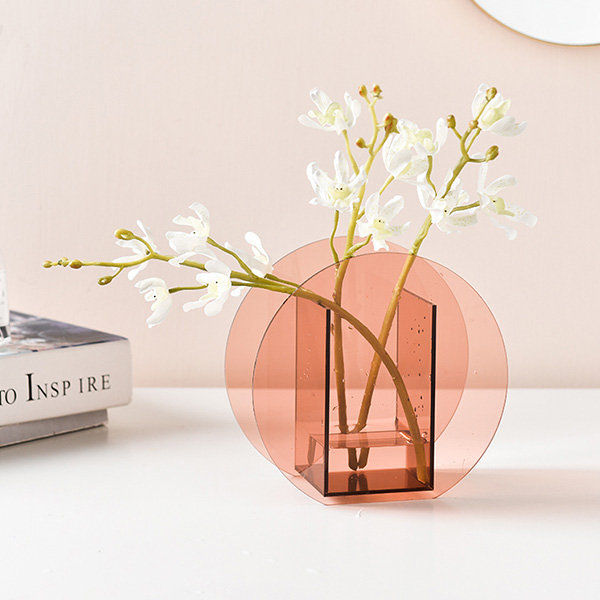 Acrylic vases use a minimalist design to decorate lovely corners of your home and office. Display artificial plants and flowers to make your space more colorful.